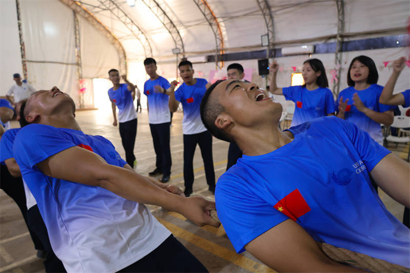 “这次拔河比赛,不仅是对中国维和快反分队官兵们身体陶冶和力量的考量,更是团体凝合力和搏斗力的活泼体现,充分展现了中国军东谈主的不凡风姿。”中国维和快反分队官兵梁兴杰说。