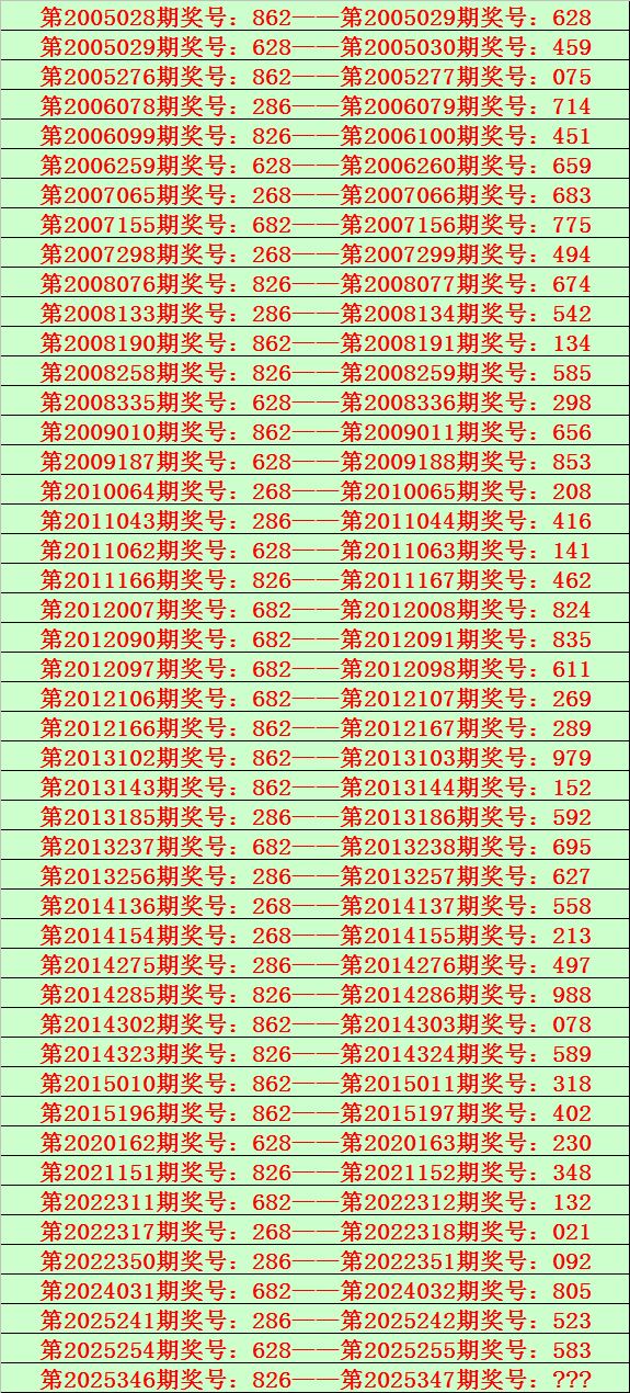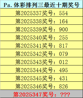 开奖追思:体彩陈列三第2025346期奖号为:826,类型:组六。